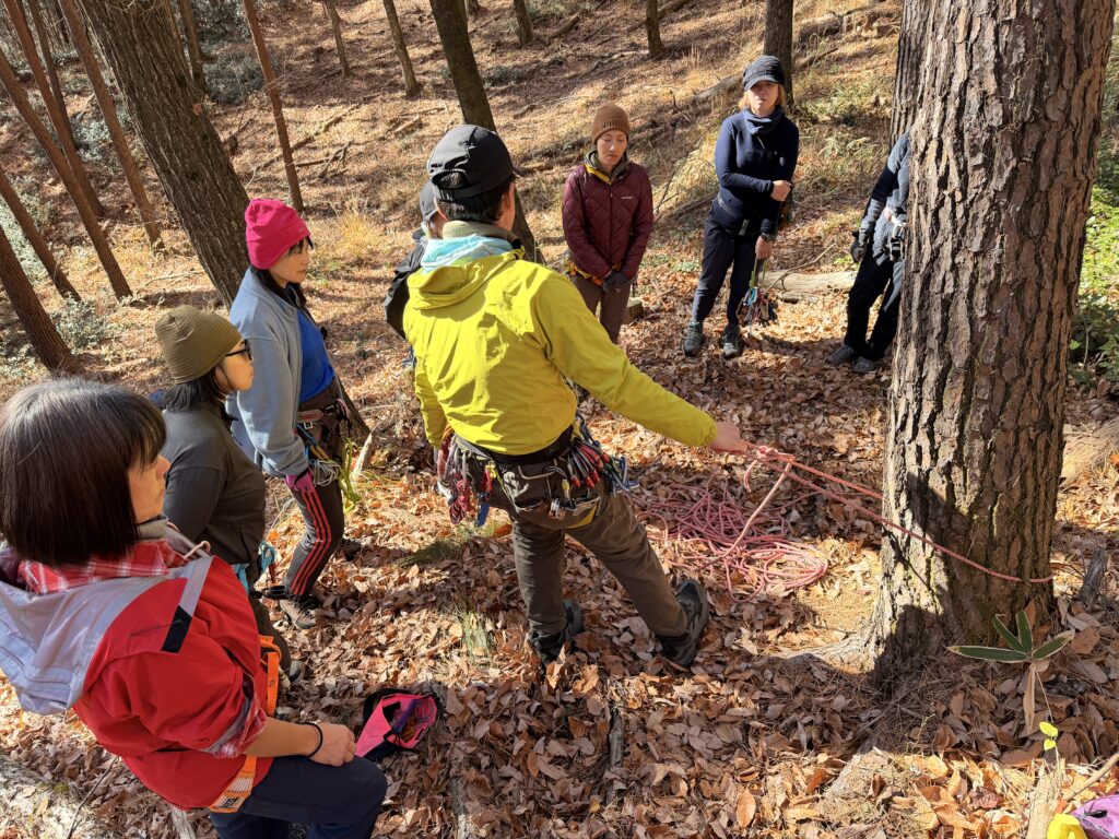 ・補助ロープ活用・・・基本ロープワーク、固定ロープ、引き上げ等